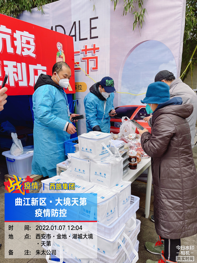 在便民服务点搭建完成后,金地湖城大镜天第小区临时党支部积极组织相关人员,协调曲江爱心大篷车、西安饮食外卖小食品、朱雀太平公司净菜礼盒,日常生活必需品销售等在社区进行平价售卖,满足了社区居民日常生活的需求。仅1月7日当天,就为社区居民提供了价值1.5万余元的生活物资保障。